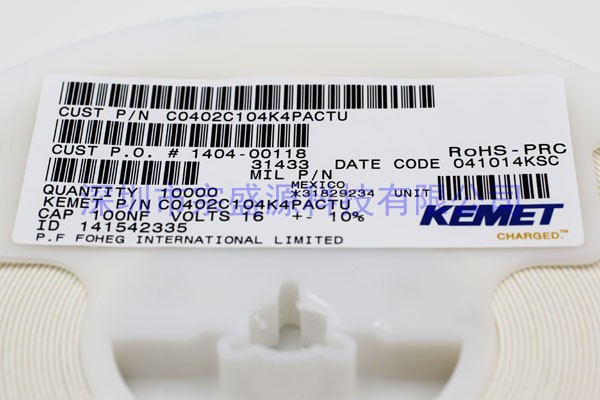KEMET陶瓷电容 0402 16V 0.1UF C0402C104K4PACTU